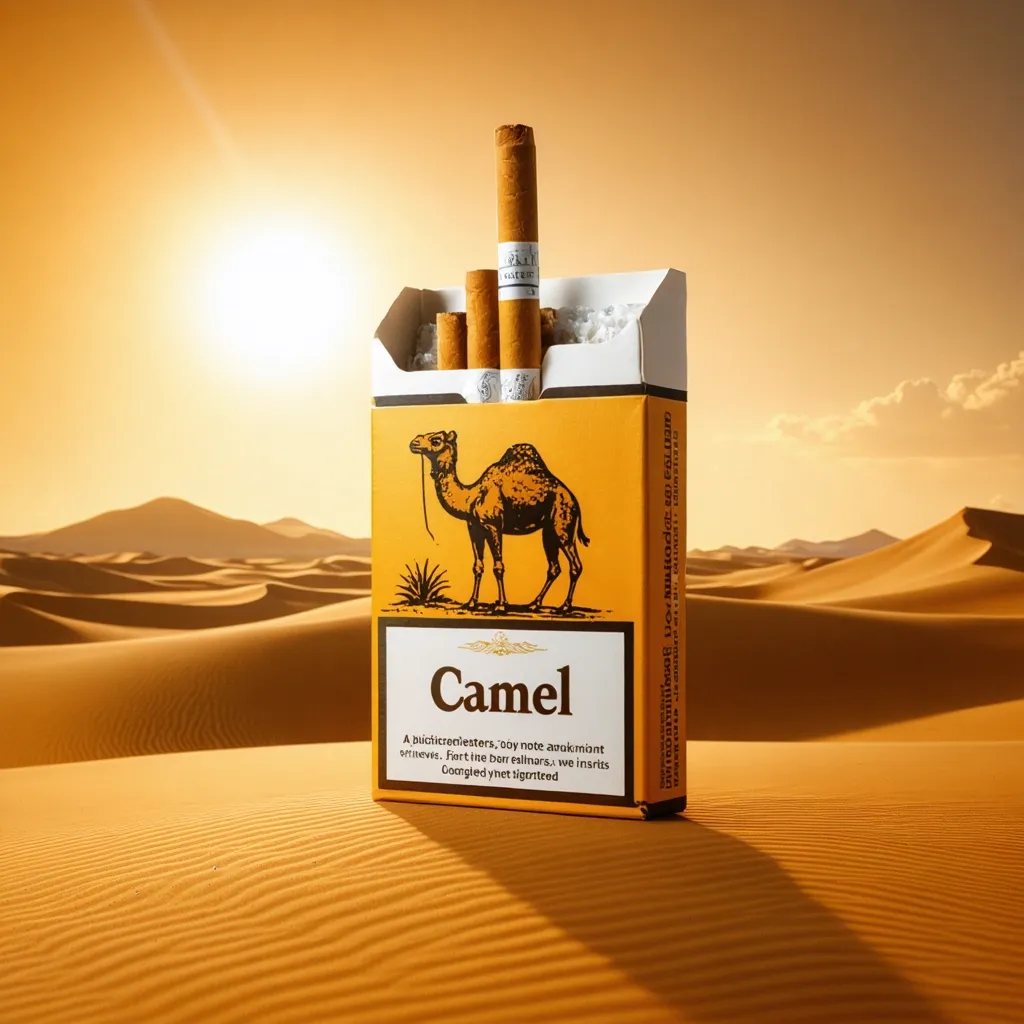 Название "Кэмел" связано с изображением верблюда на упаковке, что символизирует экзотичность и дальние страны. Этот бренд был создан в США в начале XX века и стал одним из первых, кто использовал яркий маркетинг для привлечения покупателей.